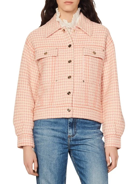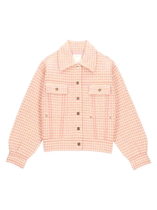 Two-tone houndstooth elevates this style, designed with a classic denim jacket silhouette.