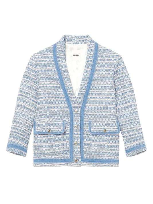 Designed with dimensional contrast trim, this tweed jacket has a modern boxy silhouette.