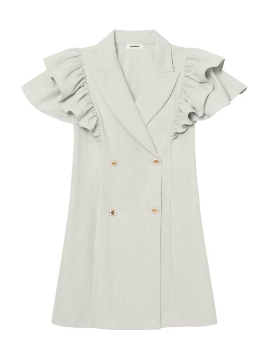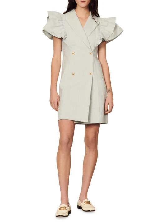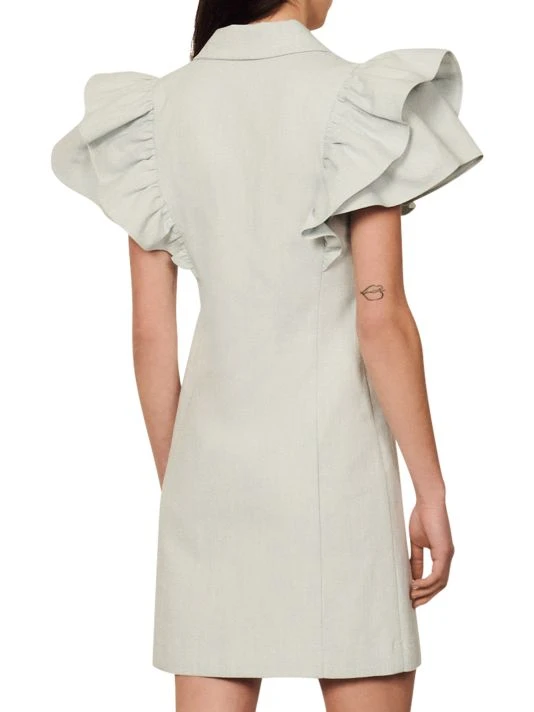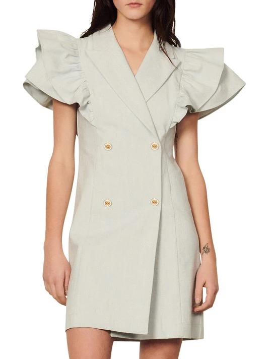 Designed with a tailored double-breasted silhouette, this flutter-sleeve dress marries sophistication and femininity.