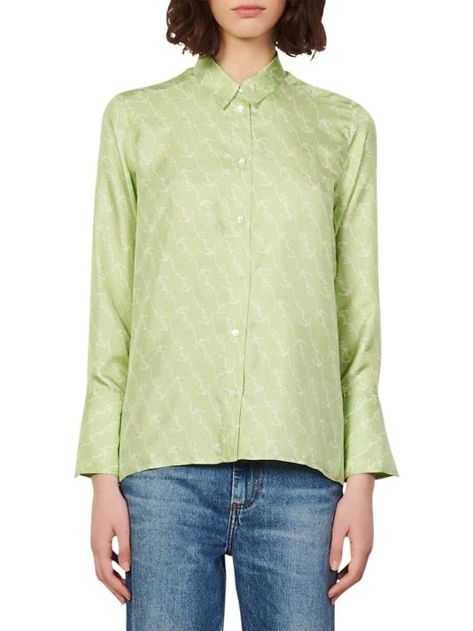 Designed with a floaty silhouette, this silk button-up shirt features a subtle allover print.