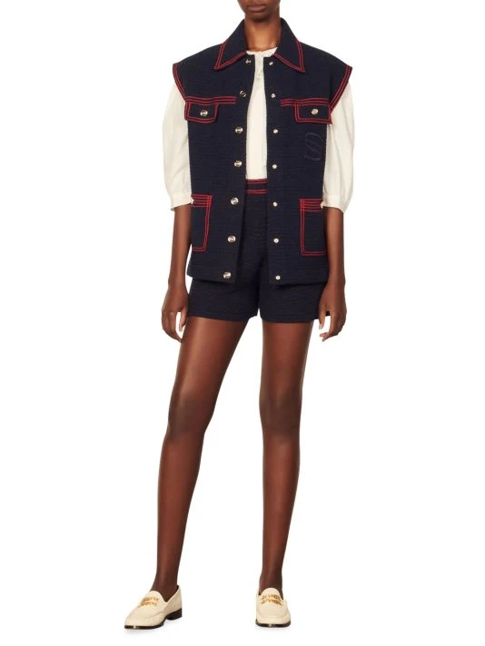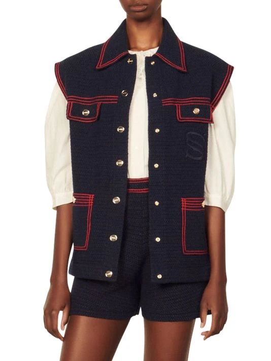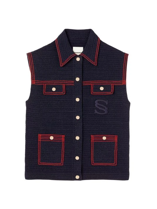 Vibrant contrast stitching lends style to this straight-cut vest, crafted from cotton tweed to a boxy fit.