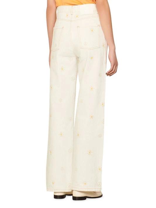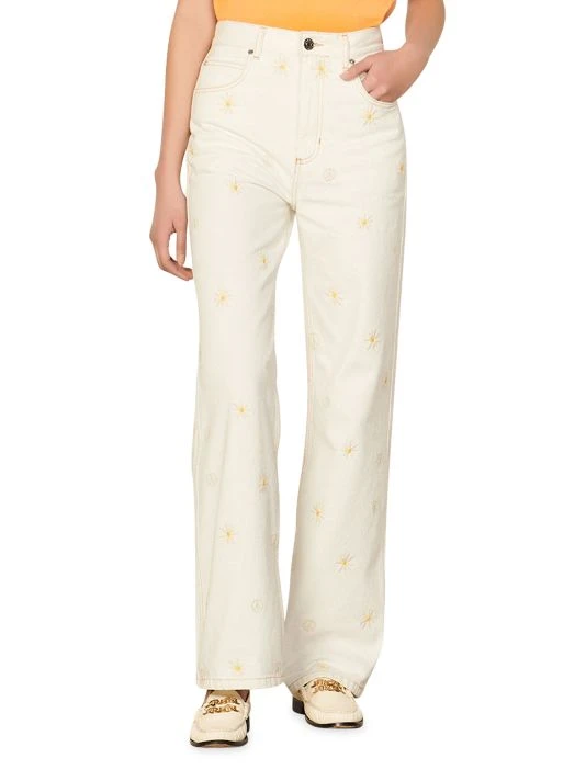 Contrast embroidered daisies cover these wide-leg jeans, cut with a flattering high waist.