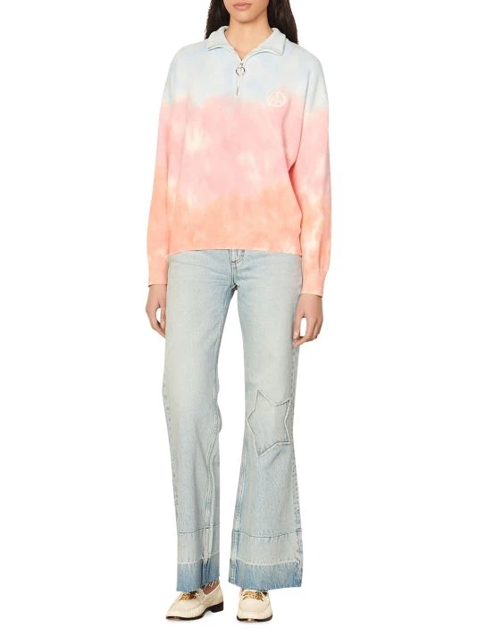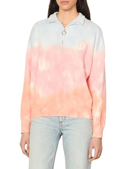 Ombré tie-dye lends style to this knit zip-front pullover.