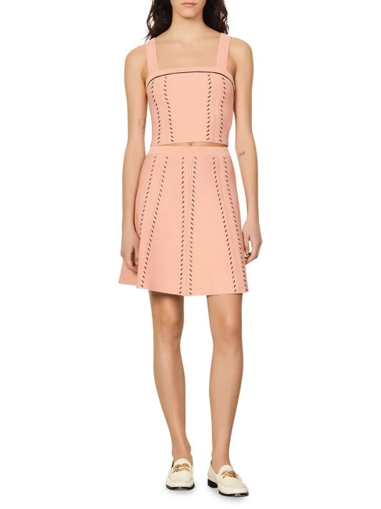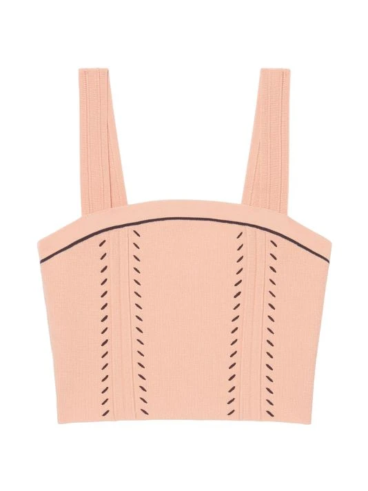 Designed with contrast embroidered details, this knit camisole has a cropped silhouette.