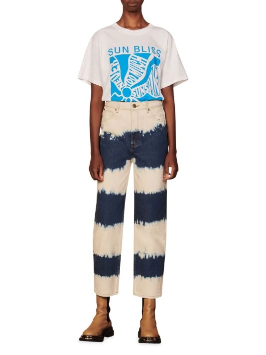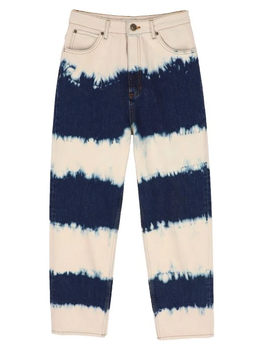 Tie-dye striping lends style to these high-rise jeans, cut with a flattering barrel-leg silhouette.
