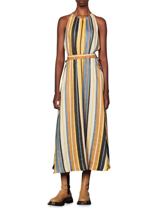 French fashion house Sandro is iconic for its simple yet chic ready-to-wear. Designed in a maxi length, the Taila dress is crafted of a linen blend with a bold vertical striped pattern.