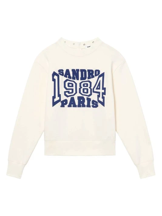A sporty graphic logo print fronts this relaxed sweatshirt, crafted from an organic cotton blend.