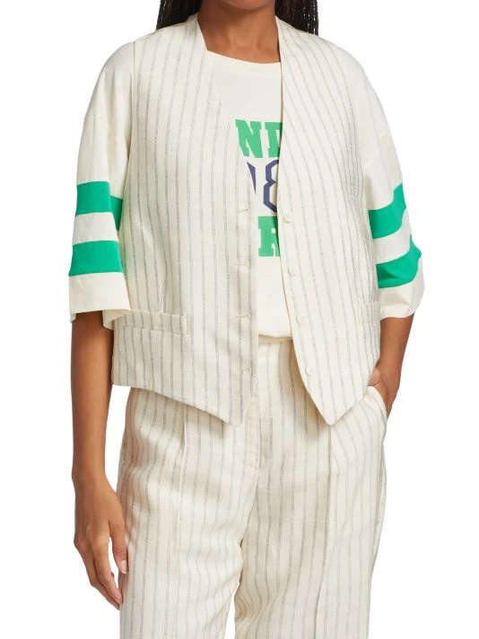 The Turner vest by Sandro is designed in a polished style with a vertical striped pattern.