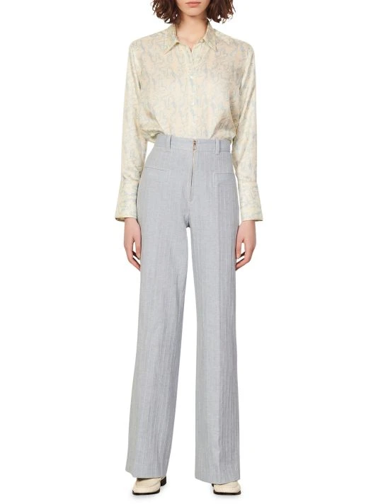 Crafted from cotton and linen, these woven pants have a flattering high waist and pinstripes to elongate the silhouette.